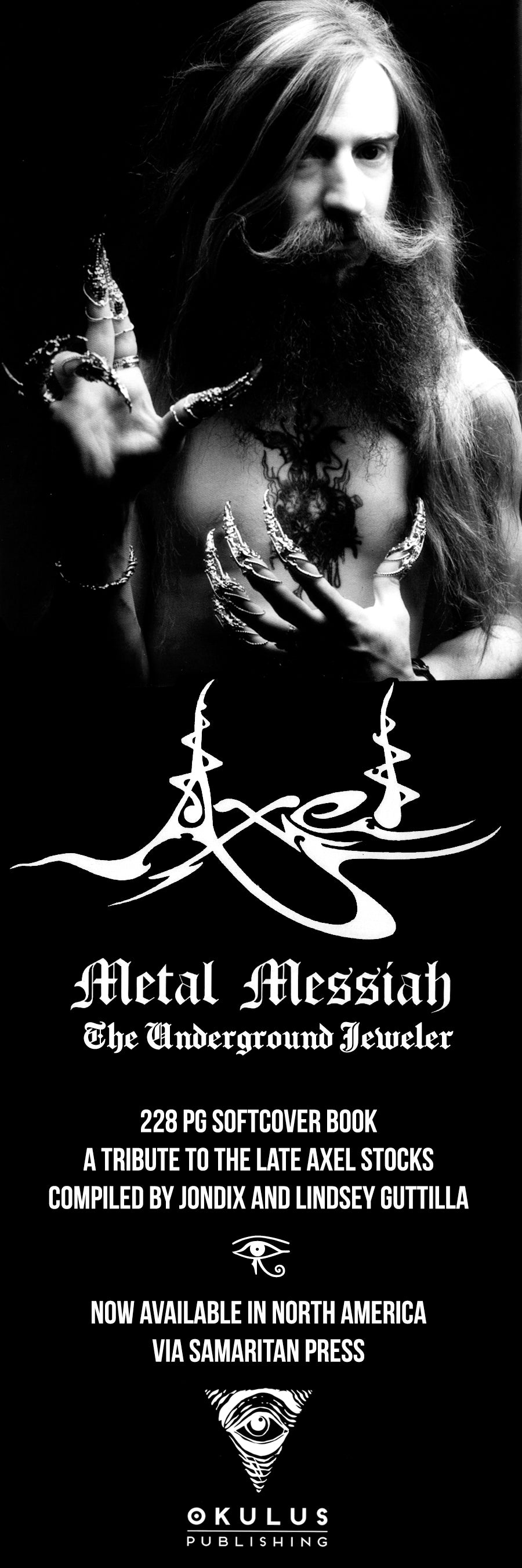 This book consists of the raw material for band posters ( OM, Wovenhand, Graveyard, and more) , self published collaborations with Steven R. Smith and Blood of the Black Owl, event flyers, skateboard graphics, the Ascend Ascend project with poet Janaka Stucky, the annual Samaritan Press calendar and more.